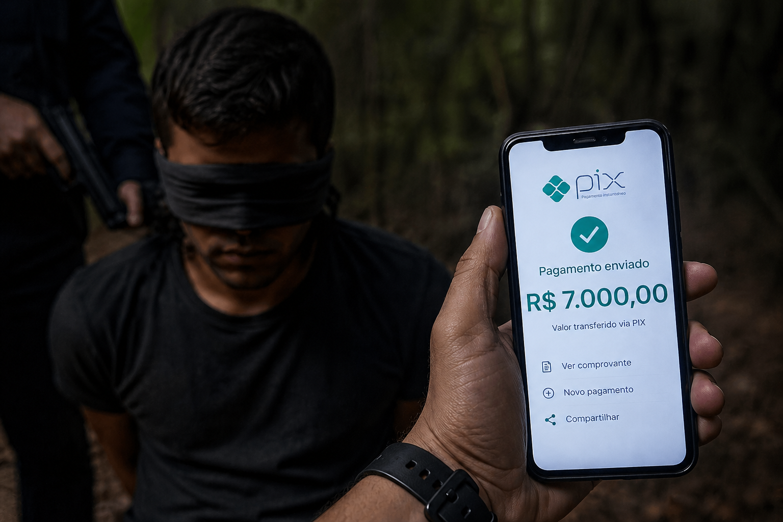 Após os pagamentos, o jovem foi amarrado, vendado e levado para uma região de mata, onde os suspeitos ainda tentaram forçar novos repasses. Eles chegaram a gravar um vídeo para pressionar a família, mas não conseguiram contato novamente.